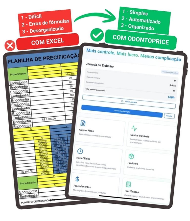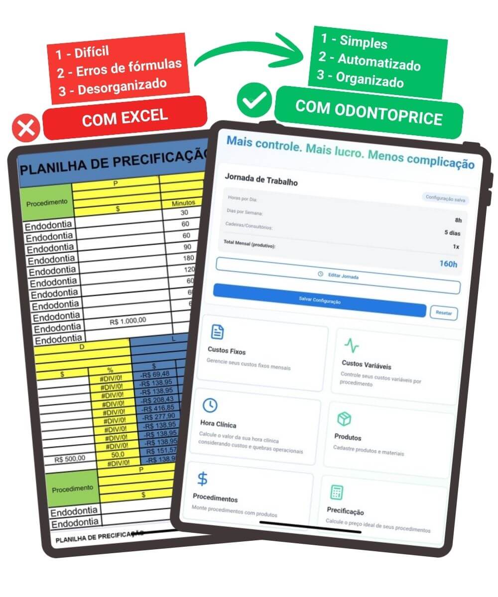 Com o OdontoPrice, você descobre sua hora clínica e calcula o lucro real de cada procedimento em poucos minutos.