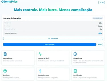 É por isso que o OdontoPrice vai te ajudar a descobrir o valor correto da sua hora clínica e precificar todos os seus procedimentos com lucro real — em apenas alguns minutos.