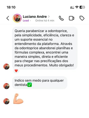 Transformei tudo em um SISTEMA SIMPLES e rápido. Não é Excel. Hoje, ajudo dentistas a cobrarem o valor justo, entenderem seus números e pararem de perder dinheiro — mesmo sem experiência com tecnologia.