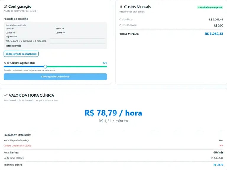 Pronto! Aqui aparecerá o valor da sua Hora Clínica