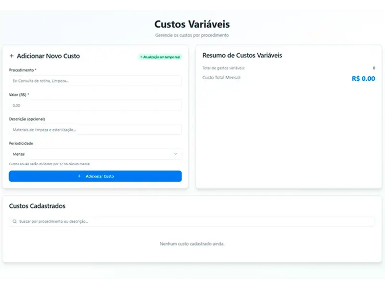 ✅ Cadastro de Custos Variáveis